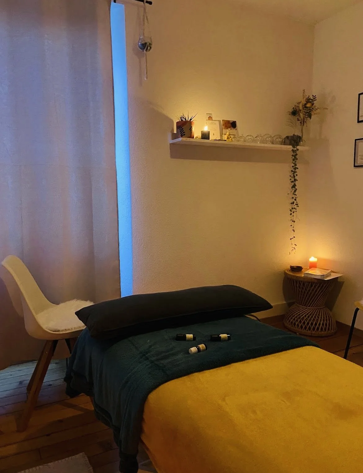 Cet espace dans un espace indépendant d’un chalet, devient le votre le temps d’un soin. Ici, tout est pensé pour vous, pour votre bien-être, tant physique qu’émotionnel. Un lieu épuré, sans distractions inutiles, afin de vous permettre de reconnecter pleinement à vous-même, à vos émotions et à vos sensations.